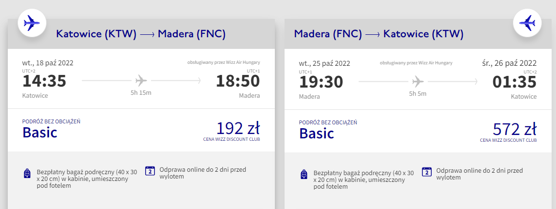 Na portugalską wyspę udacie się w terminie 18 – 25 października. Czekają was bezpośrednie loty z Katowic, realizowane na pokładzie samolotu linii Wizz Air. Bilety w najniższej cenie zakupią posiadacze Wizz Discount Club, pozostałe osoby zapłacą nieco więcej.