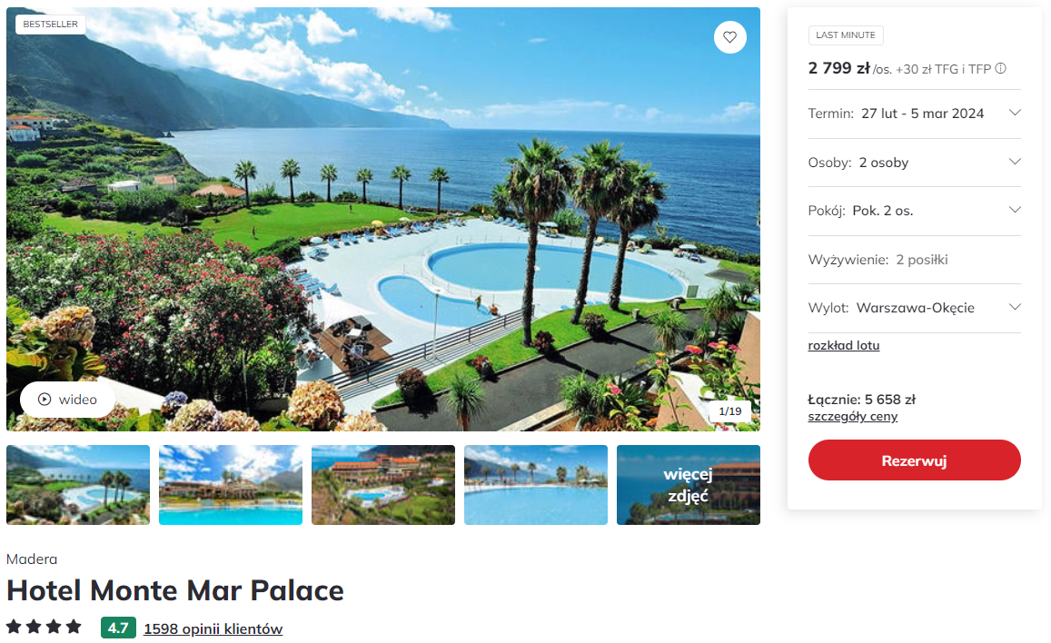 Do Portugalii udasz się w terminie 27 lutego – 5 marca. Do Funchal polecisz bezpośrednio z Warszawy linią Smartwings. W cenie możesz zabrać ze sobą bagaż rejestrowany (nadawany do luku).
