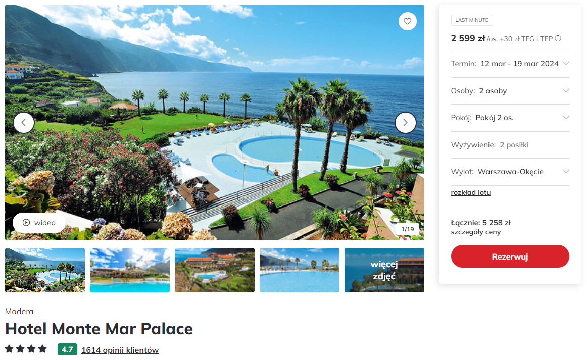 Do Portugalii udasz się w terminie 12 – 19 marca. Do Funchal polecisz bezpośrednio z Warszawy linią Smartwings. W cenie możesz zabrać ze sobą bagaż rejestrowany (nadawany do luku).