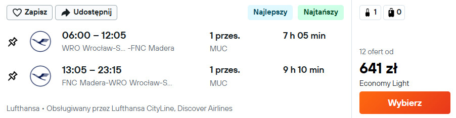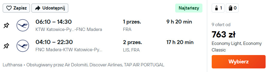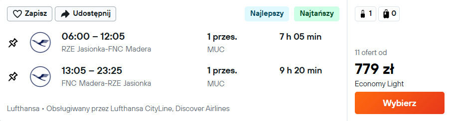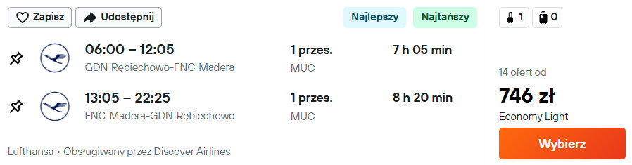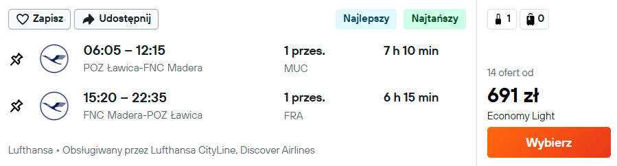 Na Maderę (Funchal) polecisz Lufthansą z Gdańska, Katowic, Krakowa, Poznania, Rzeszowa oraz Wrocławia.