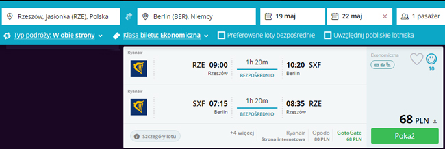 Majowe loty do Berlina z Rzeszowa za 68 PLN