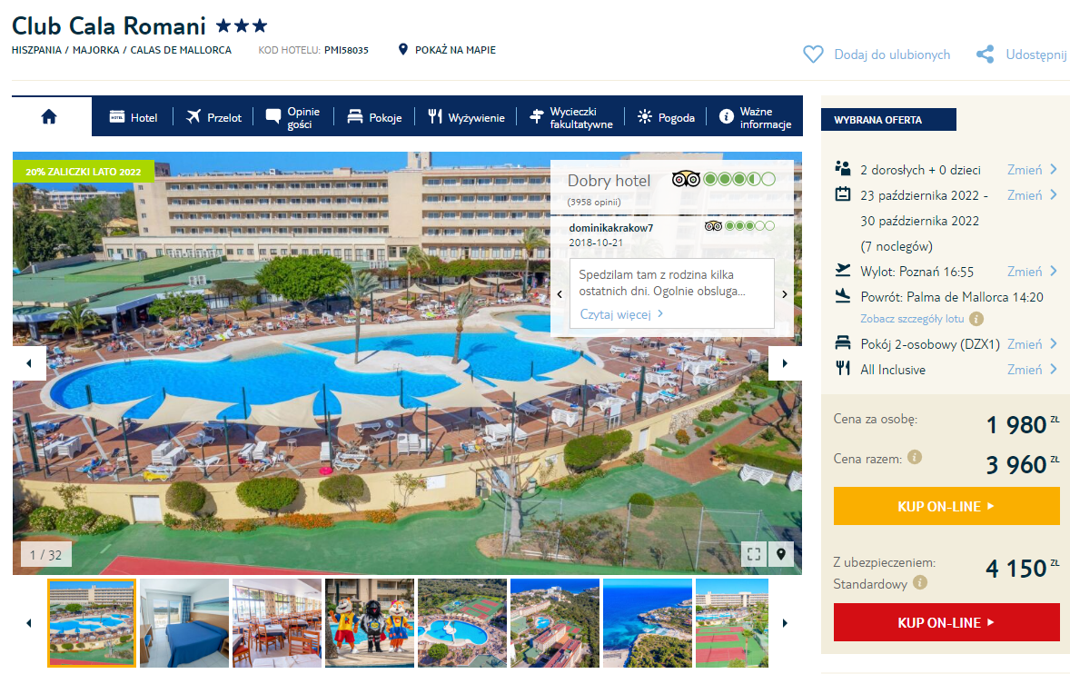 Wycieczka do Hiszpanii zaplanowana została w terminie 23 – 30 października. Czeka was bezpośredni lot z Warszawy, Katowic lub Poznania na Majorkę, z wliczonym bagażem rejestrowanym.