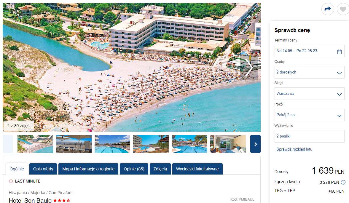 Do Hiszpanii polecisz w terminie 14 – 21 maja. Czeka cię bezpośrednia podróż z Warszawy na Majorkę, realizowana na pokładzie samolotu linii lotniczej Enter Air. W cenę wliczono bagaż rejestrowany (nadawany do luku).