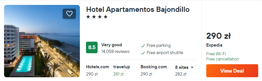 Na południu Hiszpanii możesz także wybrać ofertę zakwaterowania w 4* hotelu Apartamentos Bajondillo, który znajduje się tuż przy plaży w mieście Torremolinos. Każde studio składa się z aneksu kuchennego, salonu, sypialni oraz łazienki.