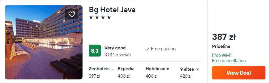 Natomiast na Majorce proponuję ci noclegi w 4* hotelu Bg Java, który od plaży Palma oddalony jest o 30 metrów. Każdy pokój wyposażony jest w klimatyzację, telewizor LCD oraz minibar. W łazience jest prysznic, suszarka do włosów oraz podstawowe przybory toaletowe.