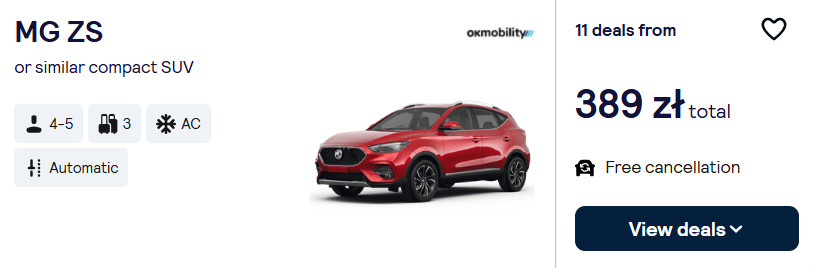 Samochód od 389 PLN/pobyt