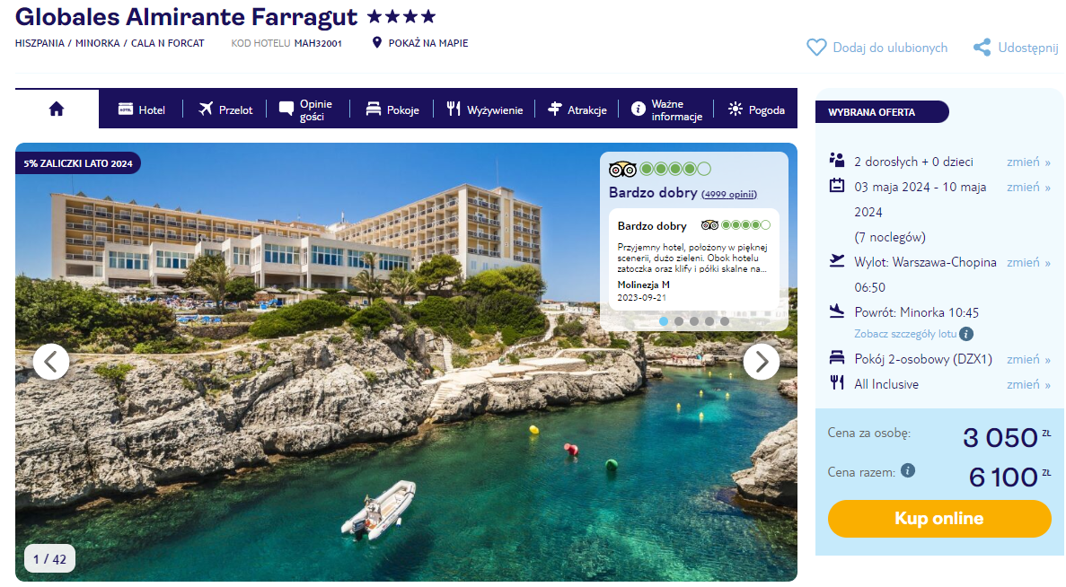 Majówka na Balearach: tydzień z all inclusive w 4* hotelu na Minorce za 3050 PLN. Z Warszawy