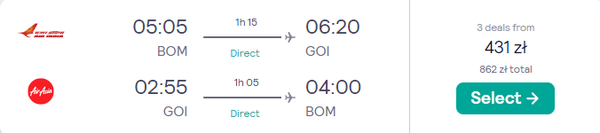 Do Indii udasz się w terminie 29 kwietnia – 7 maja. Na początek czeka cię bezpośredni lot z Warszawy do Bombaju, realizowany na pokładzie samolotu PLL LOT. Następnie polecisz do Goa na pokładzie samolotów linii Air Asia oraz Air India. Bez dodatkowych opłat podróżować będziesz z bagażem podręcznym.