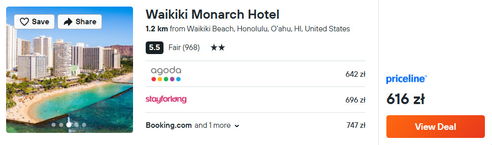W najlepszym możliwym miejscu, czyli w odległości ok. 500 metrów od plaży Waikiki – zatrzymaj się w hotelu Waikiki Monarch.