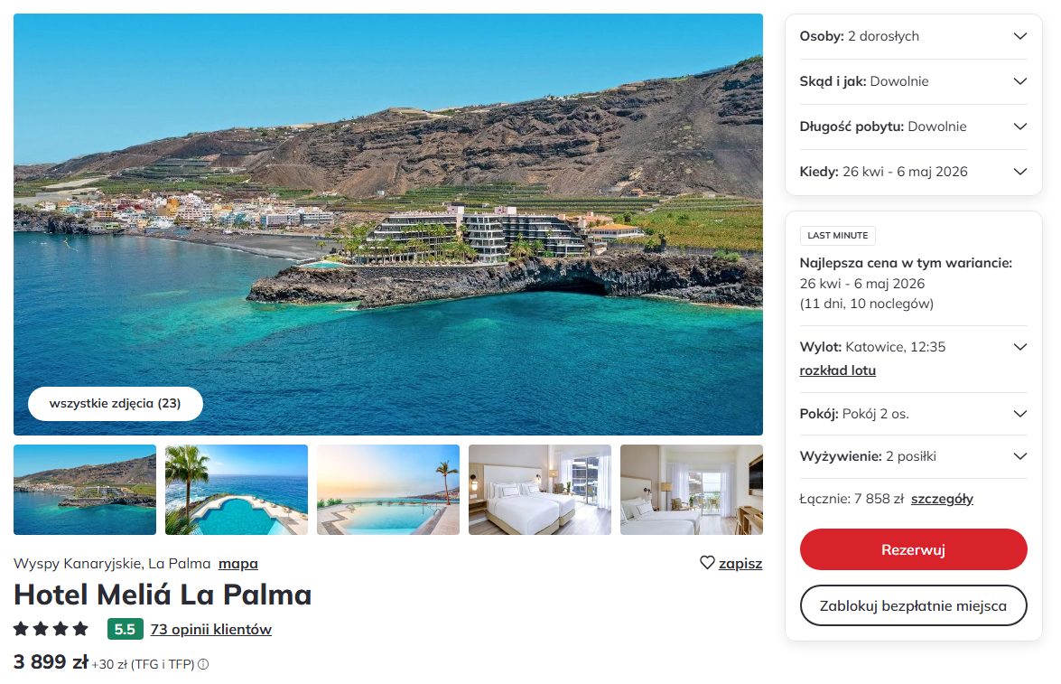 🛏️ Zakwaterowanie: 4* hotel Meliá La Palma