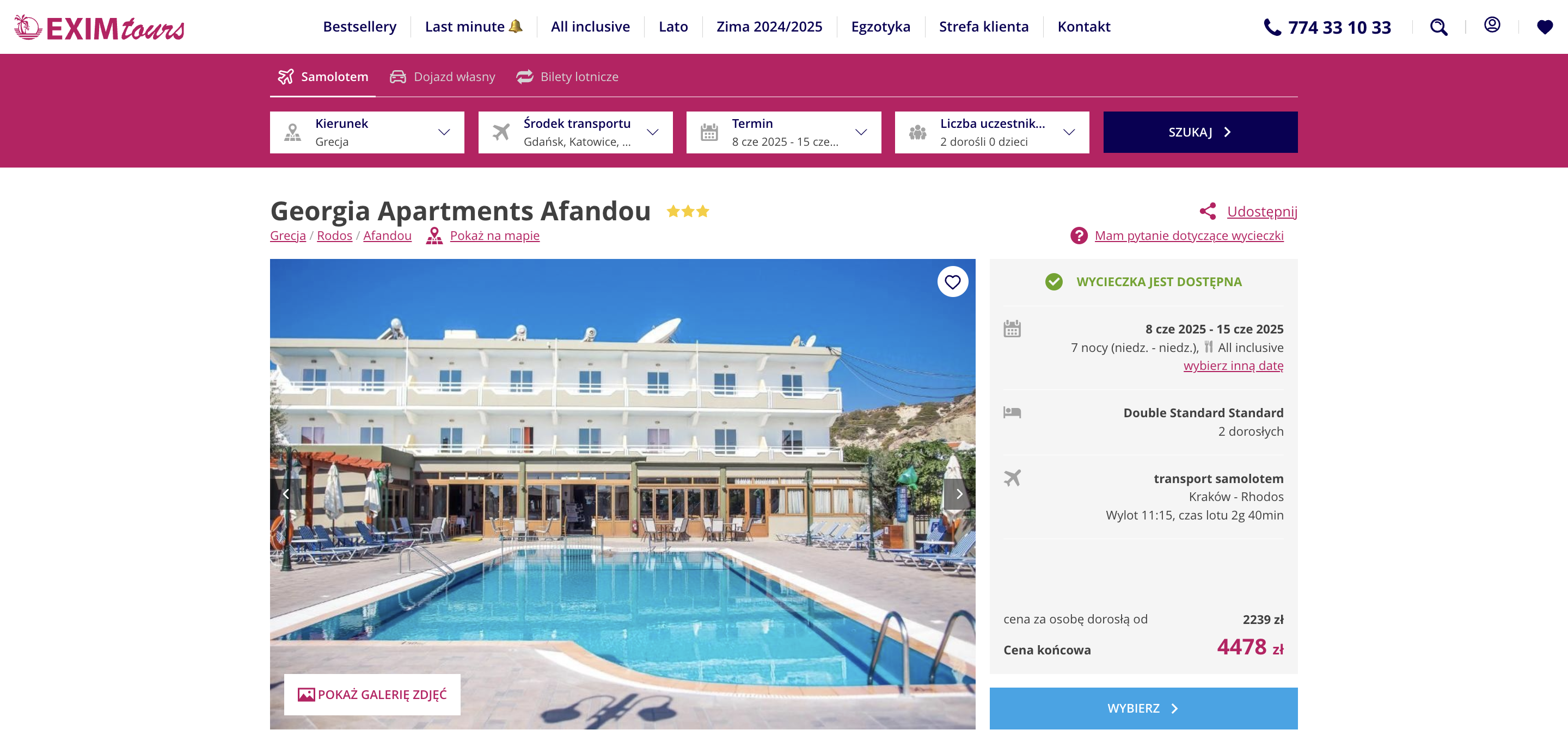 Do Grecji wybierzesz się w terminie 28 kwietnia – 5 maja. Na Rodos polecisz linią Ryanair z lotniska w Krakowie. W cenę pakietu wliczone są transfery na trasie lotnisko – hotel – lotnisko, all inclusive i podstawowe ubezpieczenie.