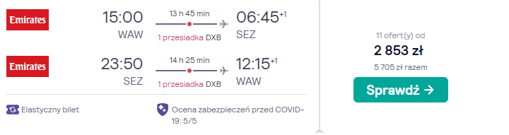 Na Seszele polecicie w „gorącym” terminie długiego majowego weekendu: 28 kwietnia – 6 maja. Czeka was lot z warszawskiego lotniska im. Fryderyka Chopina, realizowany na pokładzie samolotu linii lotniczej Emirates.