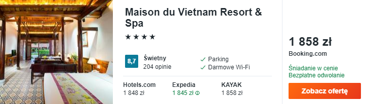 Na wyspie proponuję wam zakwaterowanie w świetnie ocenianym 4* hotelu Maison du Vietnam Resort & Spa. Będzie to świetne miejsce na wypoczynek we dwoje: na miejscu czeka kameralna strefa spa, romantycznie zaaranżowane pokoje, odkryty basen oraz śniadania wliczone w cenę noclegów.
