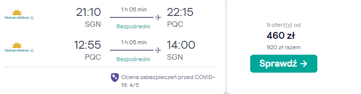 Z Ho Chi Minh na Pho Quoc przedostaniecie się korzystając z usług przewoźnika Vietnam Airlines. Operuje on na tej trasie kilka razy dziennie, dlatego z łatwością dobierzecie loty, które będą wam najbardziej pasowały.