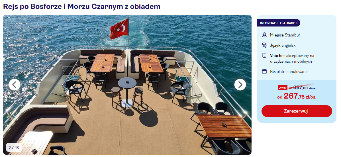Zobacz niezwykłe oblicze Stambułu z perspektywy wody! Zarezerwuj w tym celu wycieczkę po Bosforze i Morzu Czarnym wraz z wliczonym obiadem.