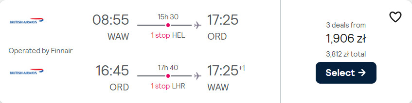 Do Chicago udasz się z warszawskiego portu lotniczego im. Fryderyka Chopina w terminie obejmującym popularną majówkę. W obie strony podróżować będziesz na pokładach samolotów linii American Airlines, British Airways oraz Finnair z przesiadkami w Helsinkach i Londynie. Bez dodatkowych kosztów do USA udasz się z bagażem podręcznym oraz przedmiotem osobistym (mały plecak lub damska torebka).