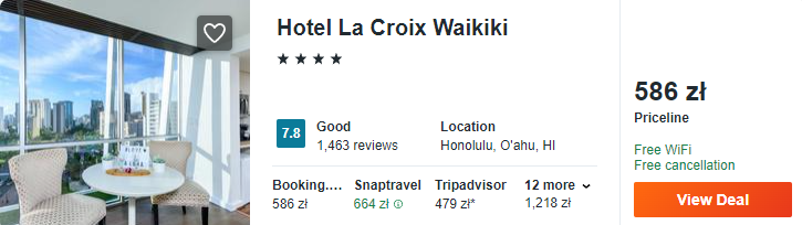 Na Hawajach zatrzymajcie się w 4* hotelu La Croix Waikiki. Obiekt jest położony w pobliżu słynnej plaży Waikiki. Co więcej, na miejscu skorzystacie z siłowni i basenu zewnętrznego.