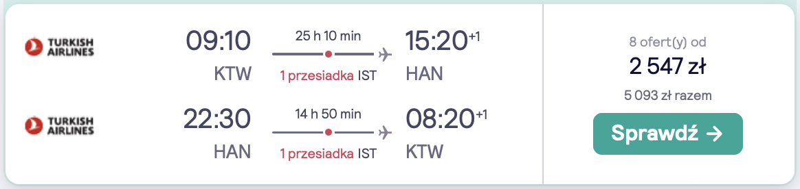 Do Azji wybierzesz się w dniach 24(25) kwietnia – 4 maja. Czekają cię loty z lotniska w Katowicach do Hanoi, realizowane na pokładzie samolotów linii lotniczej Turkish Airlines. Po drodze zaplanowano bezpieczne, gwarantowane przez przewoźnika przesiadki w Stambule.