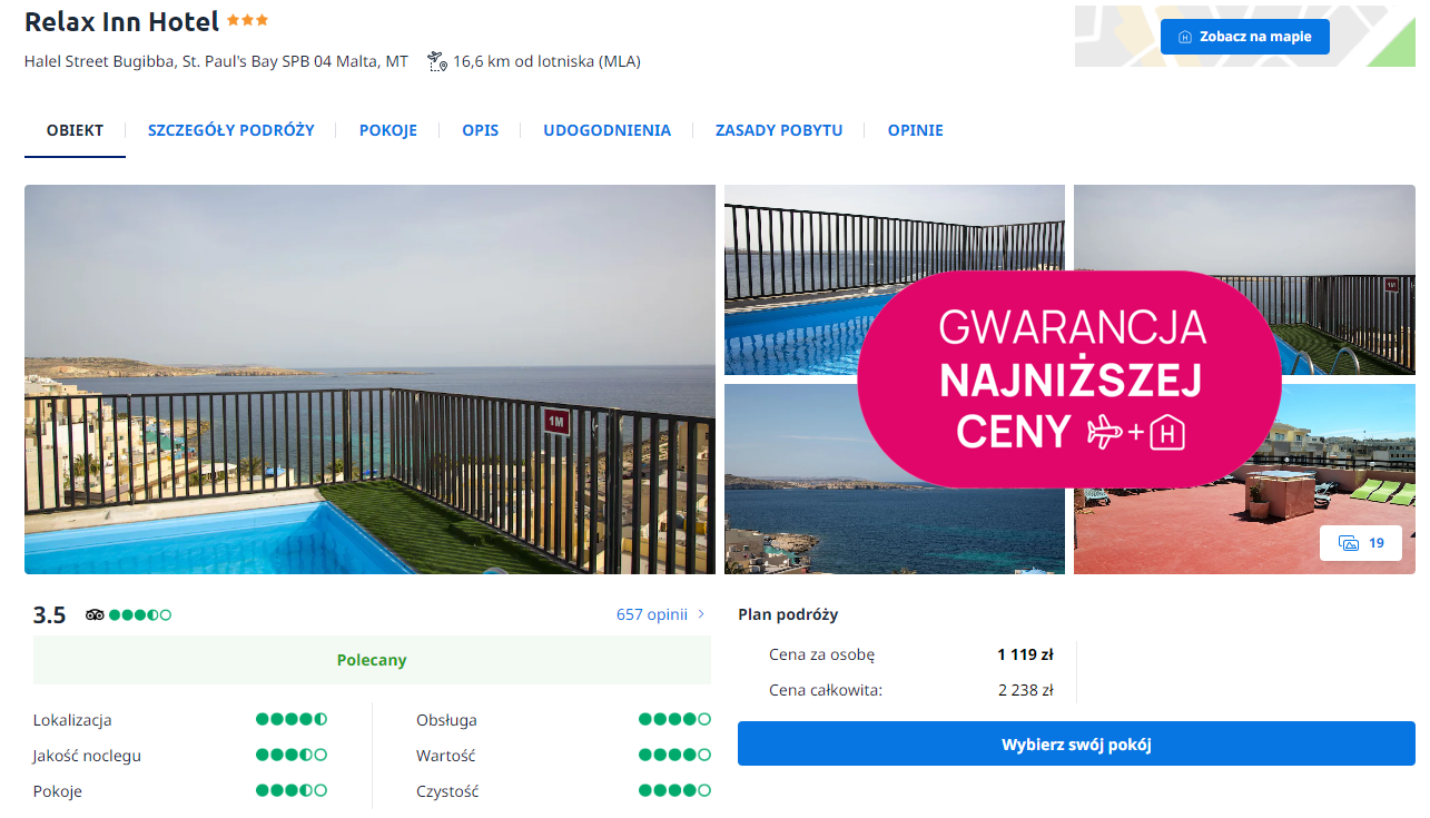 Spędzisz tydzień w 3* hotelu Relax Inn. Obiekt znajduje się w pobliżu Zatoki św. Pawła i oferuje wspaniałe widoki oraz doskonałą lokalizację. Będzie to dobra baza wypadowa w trakcie urlopu na wyspie.