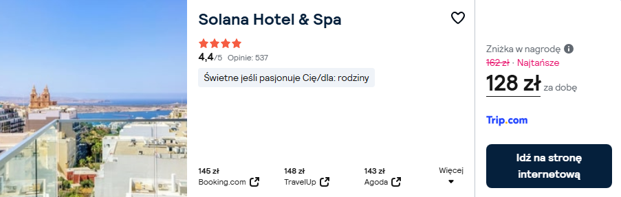 Na Malcie zatrzymaj się w 4* Solana Hotel & Spa. Będzie świetnym miejscem na wypoczynek po dniu pełnym zwiedzania.