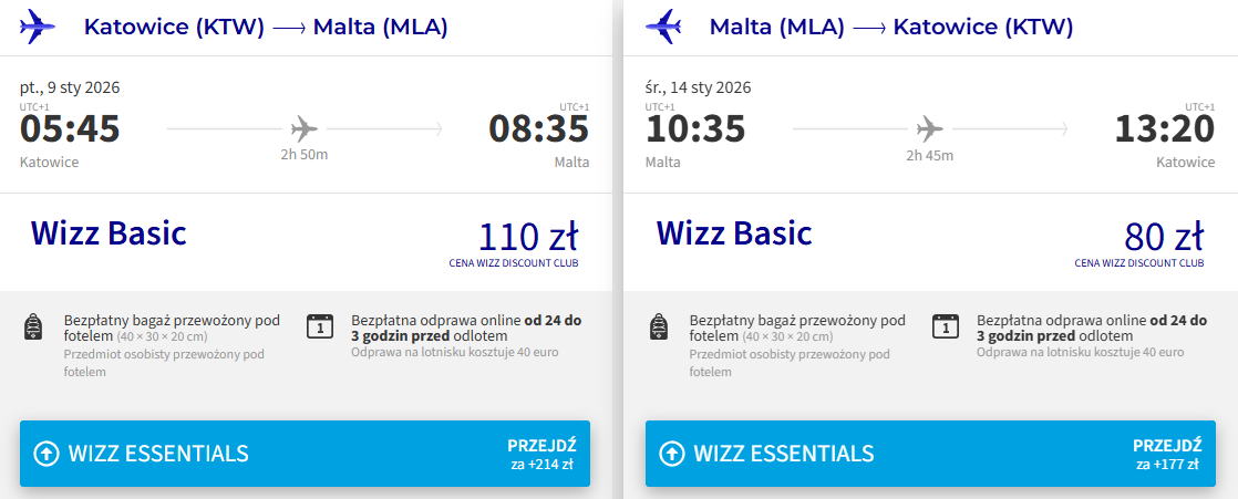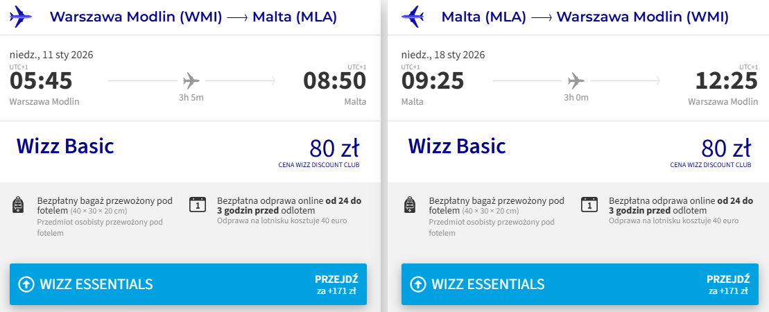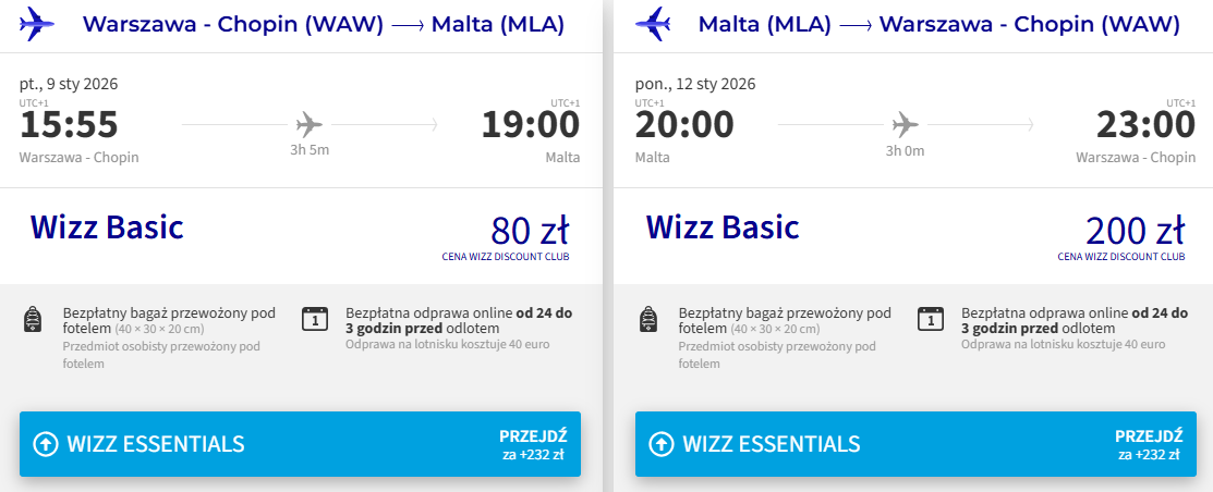 Na Maltę polecisz w styczniu. Do wyboru masz wyloty z Wizz Air 3 lotnisk w Polsce (szczegóły poniżej). Najtańsze bilety kupią członkowie Wizz Discount Club, pozostałe osoby zapłacą nieco więcej.
