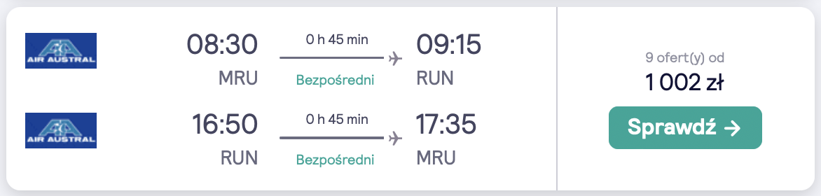 Linia lotnicza: Air France, Air Austral, Air Mauritius