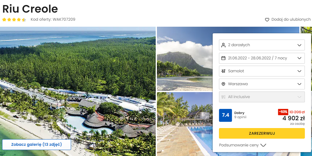 W podróż do Afryki udacie się w terminie 21 – 28 czerwca. Do wyboru macie wyloty z Warszawy lub Berlina z wliczonym bagażem rejestrowanym. Na wyspie będziecie zakwaterowani w 4* hotelu Riu Creole. Położony tuż przy piaszczystej plaży, oferuje gościom elegancko urządzone, klimatyzowane pokoje, kilka restauracji serwujących specjały w formule all inclusive, a także m.in. bar przy basenie i dyskotekę.