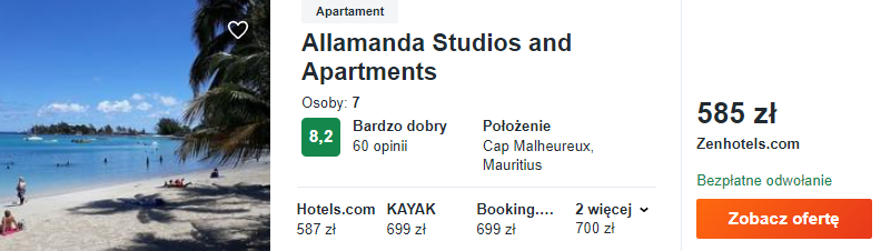 Za loty w obie strony oraz zakwaterowanie tylko 2988 PLN za osobę przy 2 podróżnych śpiących w jednym pokoju.