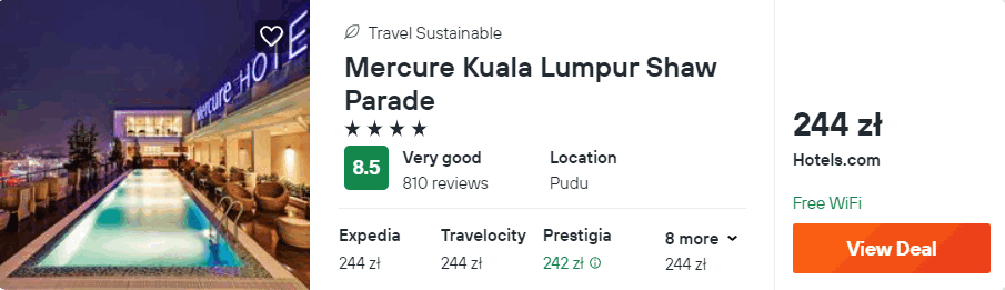 W Kuala Lumpur proponuję wam noclegi w 4* hotelu Mercure Shaw Parade, który posiada odkryty basen na dachu oraz bar. Każdy pokój został gustownie urządzony oraz posiada łazienkę z wanną i prysznicem. Na terenie całego obiektu będziecie mieć zapewniony dostęp do sieci WiFi.