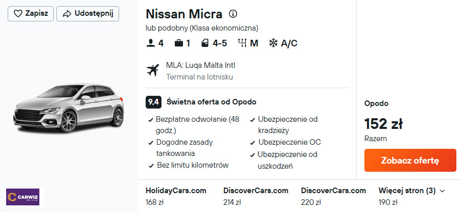 Samochód od 152 PLN/pobyt