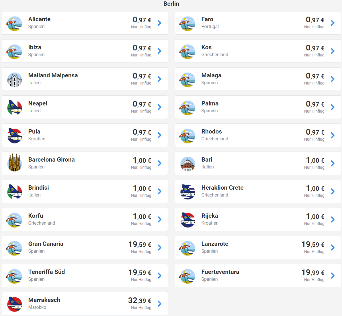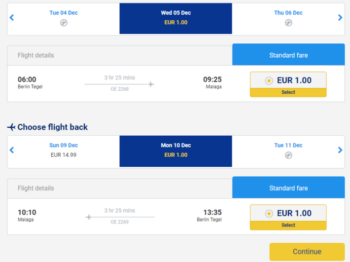 Przykładowa rezerwacja biletów z Berlina na Majorkę: