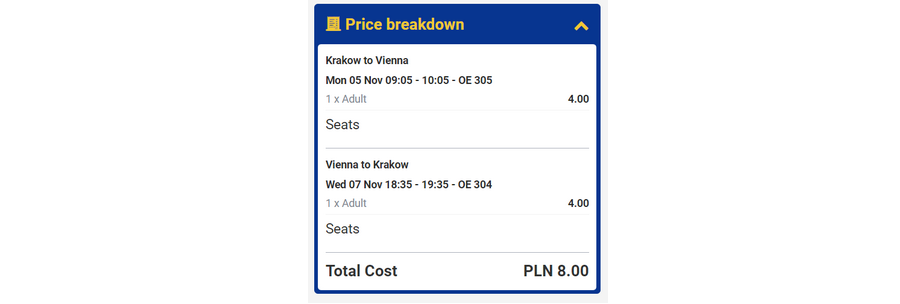 Przykładowa rezerwacja biletów z Krakowa do Wiednia: