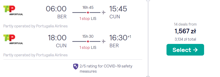 Na Półwysep Jukatan wybierzecie się na początku jesieni, w terminie 23 – 30 września. Czeka was podróż z lotniska w Berlinie, a w obie strony polecicie na pokładach samolotów linii TAP Air Portugal z wygodnymi przesiadkami w Lizbonie. W cenie biletu zabrać ze sobą będziecie mogli bagaż podręczny oraz jeden przedmiot osobisty (mały plecak lub damską torebkę).