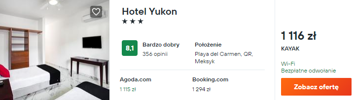 Po wylądowaniu w Meksyku od razu polecam wam ruszać do Playa del Carmen, w celu uniknięcia drożyzny oraz tłumów odwiedzających Cancun niemal o każdej porze roku. Wybrałem tam dla was zakwaterowanie w znajdującym się niedaleko plaży 3* hotelu Yukon.