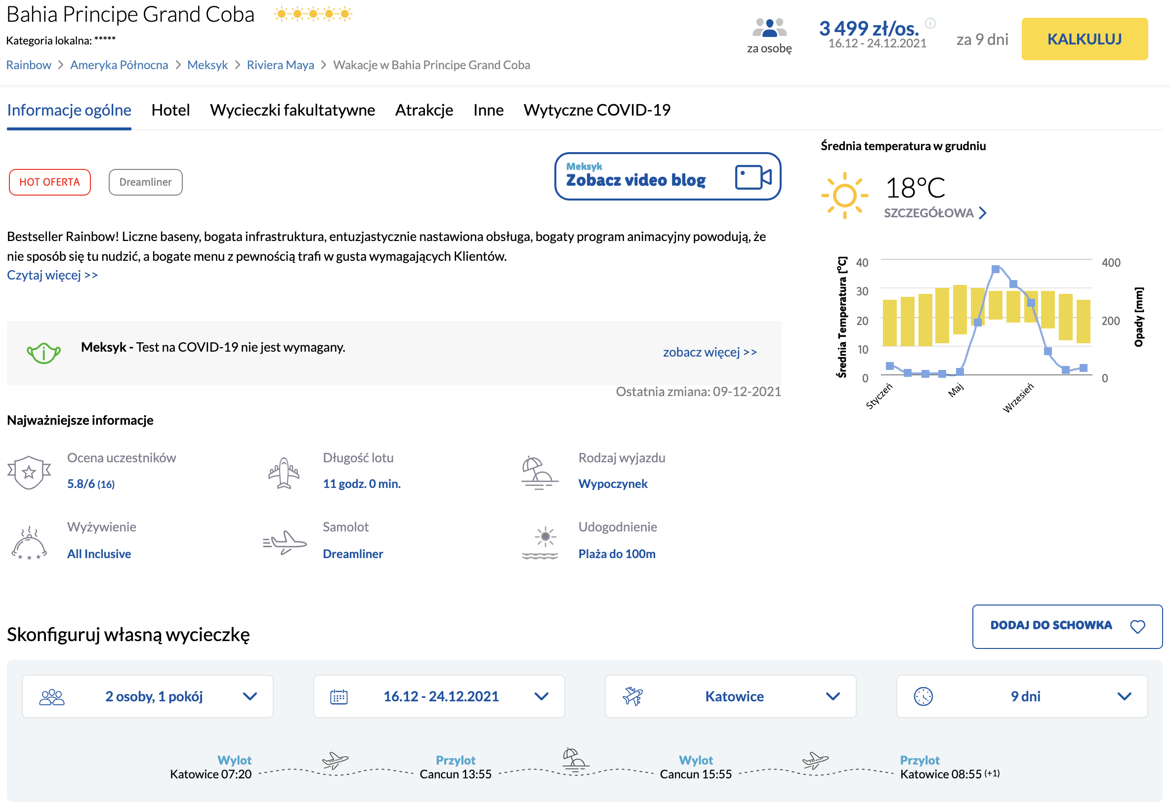 W Meksyku spędzicie 8 dni w luksusowym 5* hotelu Bahia Principe Grand Coba, usytuowanym w głębi kompleksu Grand Bahia Principe Riviera Maya, który położony jest tuż przy piaszczystej plaży. Do waszej dyspozycji będą liczne baseny, bogata infrastruktura, gościnna obsługa, bogaty program animacyjny, różnorodne menu oraz park wodny i delfinarium. Wszystkie pokoje w obiekcie są klimatyzowane, wyposażone w Wi-Fi oraz prywatne łazienki z bezpłatnym zestawem kosmetyków.