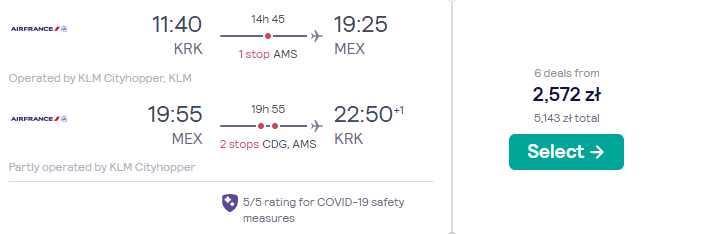 Gotowi na spotkanie przygody? W podróż do Meksyku wybierzecie się już niedługo, bo w terminie 22 – 30 stycznia. Czekają was loty z Krakowa, realizowane na pokładzie samolotów linii lotniczych Air France oraz KLM. Po drodze zaplanowano bezpieczne, gwarantowane przez przewoźników przesiadki w Amsterdamie i Paryżu.