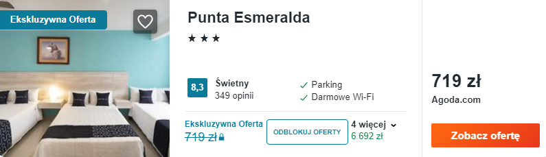 Po wylądowaniu od razu polecam wam ruszać do pobliskiego Playa del Carmen (dostaniecie się tam tanio np. autobusem), gdzie wybrałem dla was zakwaterowanie w bardzo dobrze ocenianym 3* hotelu Punta Esmeralda. Znajduje się on w odległości około 500 m od plaży.