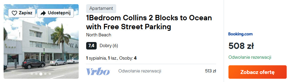 Wypożycz auto i zatrzymaj się w 1Bedroom Collins – 2 bloki od oceanu, z bezpłatnym parkingiem na ulicy – wygoda, blisko plaży i sklepów. Idealne na zwiedzanie Miami.