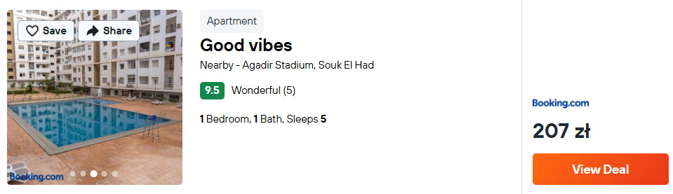 Zatrzymaj się w Good Vibes w Agadirze – super lokal blisko centrum, sklepy i knajpki pod ręką, a po dniu pełnym wrażeń wskocz do basenu i totalny chill. Idealne miejsce na luz i odpoczynek!