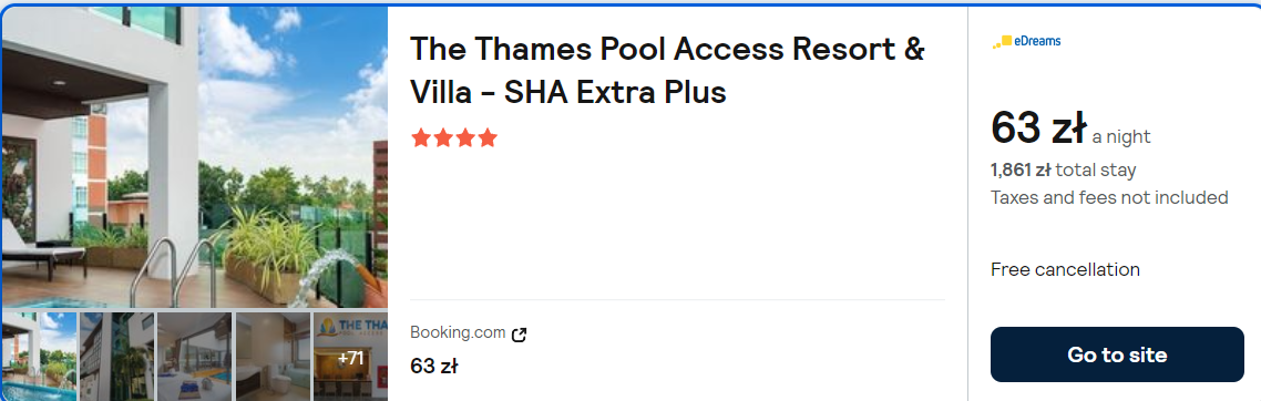 Na Phuket polecam noclegi w 4* The Thames Pool Access Resort & Villa. Każdy pokój wyposażony jest w klimatyzację, WiFi, telewizor i prywatną łazienkę z bezpłatnym zestawem kosmetyków.