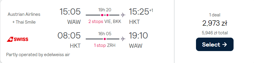 Na urlop udasz się z warszawskiego lotniska im. Fryderyka Chopina w terminie 15(16) września – 16 października. W obie strony polecisz na pokładach samolotów linii SWISS i Thai Smile z przesiadkami na lotniskach w Zurychu i Bangkoku. W cenie biletu zabrać ze sobą możesz bagaż podręczny oraz przedmiot osobisty (mały plecak lub damską torebkę).