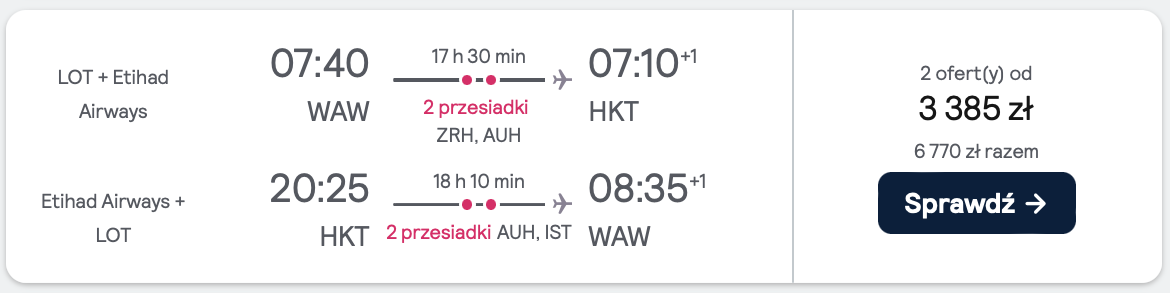 Do Azji udasz się w terminie 21 (22) lutego – 20 marca. Czekają cię loty z Warszawy na Phuket, a po drodze przesiądziesz się w Zurychu i Abu Zabi. Przesiadki są gwarantowane przez przewoźników.