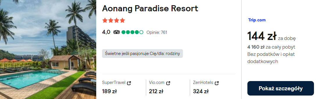 W Krabi proponuję pobyt w 4* hotelu Aonang Paradise Resort. Kompleks znajduje się niedaleko plaży. Na miejscu skorzystasz z basenu zewnętrznego i siłowni.
