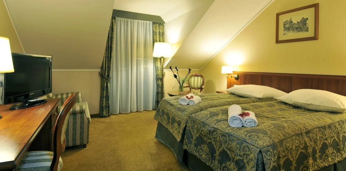 W cenie otrzymasz nocleg w komfortowo urządzonym pokoju oraz codzienne śniadania (w formie bufetów) i obiadokolacje z napojami i deserem. W pakiecie dostaniesz również zestaw powitalny (kawa, herbata oraz woda mineralna), nielimitowany dostęp do Centrum Rekreacji Spa & Wellness (basen, sauna, sala fitness), animacje oraz Internet WiFi.