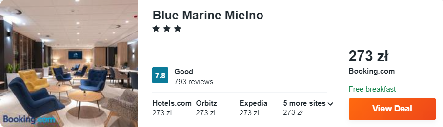 Dowiedzcie się więcej o tym hotelu3* aparthotel Blue Marine Mielno położony jest pomiędzy wybrzeżem Morza Bałtyckiego oraz jeziorem Jamno. Od piaszczystej plaży dzieli go krótki spacer przez nadmorski las. Codziennie rano w restauracji czeka na was śniadanie (serwowane w formie bufetu), które wliczone jest w cenę zakwaterowania.