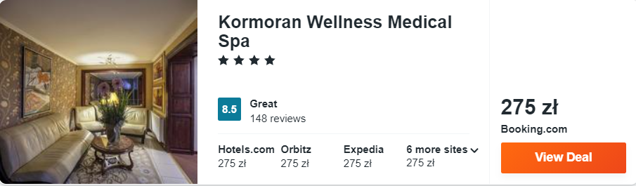 Dowiedzcie się więcej o tym hoteluW pięknej okolicy miejscowości Rowy znajduje się ostatni hotel na przygotowanej przeze mnie liście – 3* hotel Kormoran Wellness Medical Spa. Na miejscu dla najmłodszych przygotowano plac zabawa, a za dodatkową opłatą goście mogą wypożyczyć rower.