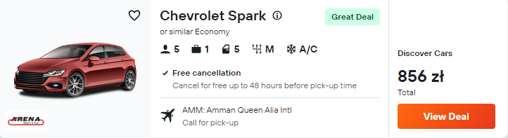 Wypożyczony samochód pozwoli szybko dostać się do hotelu, a następnie na własną rękę odkrywać atrakcje w Jordanii.