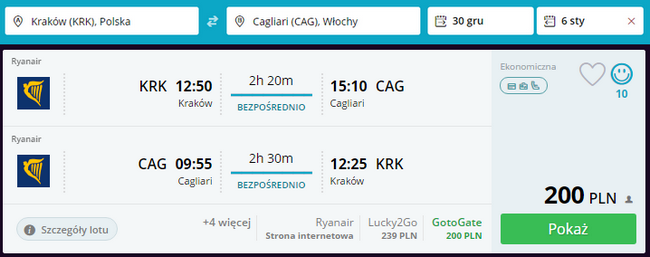 Kliknij i zarezerwuj loty z Krakowa do Cagliari i z powrotem: