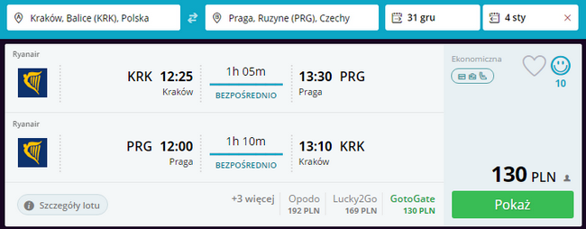 Kliknij i zarezerwuj loty z Krakowa do Pragi i z powrotem: