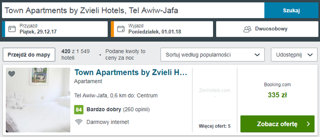 W Izraelu proponuję Wam zakwaterowanie w Town Apartments by Zvieli Hotels za 335 PLN/pokój za noc.